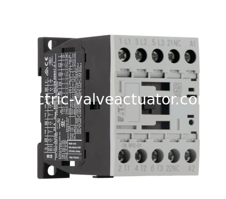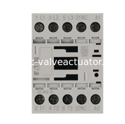 คอนแทคเตอร์ Eaton DLM12-01 เป็นอุปกรณ์สามขั้วที่มีแรงดันไฟคอยล์ 24V AC และกำลังไฟพิกัด 5.5 kW ออกแบบมาสำหรับการใช้งานควบคุมมอเตอร์ มีการเชื่อมต่อแบบสกรูสำหรับทั้งวงจรหลักและวงจรเสริม และมาพร้อมกับหน้าสัมผัสแบบกระจกและวงจรตัวกรองไฟกระชากแบบวาริสเตอร์